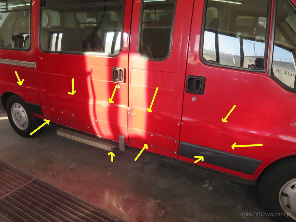 Vhc non démonté = Moulure porte av. droite + porte av. droite + moulure panneau lat. droit + panneau lat. droit + marche pieds lat. droit + porte coulissante droit + moulure panneau lat. arr. droit + panneau arr. droit endommagés