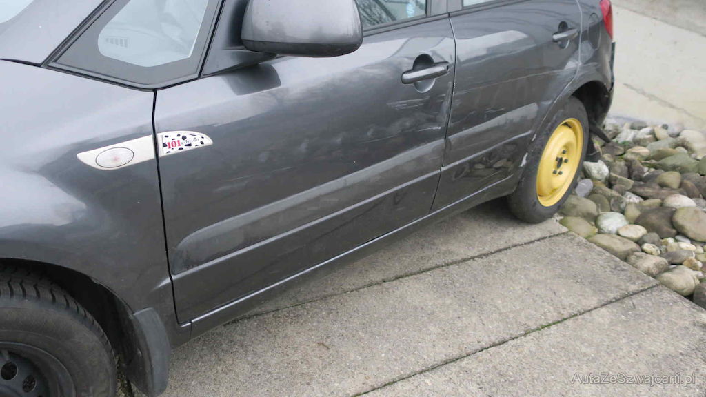 Seitenschaden links: Türen, Seitenwand, Rad, Radlager und Stosstange hinten links wurden beschädigt.