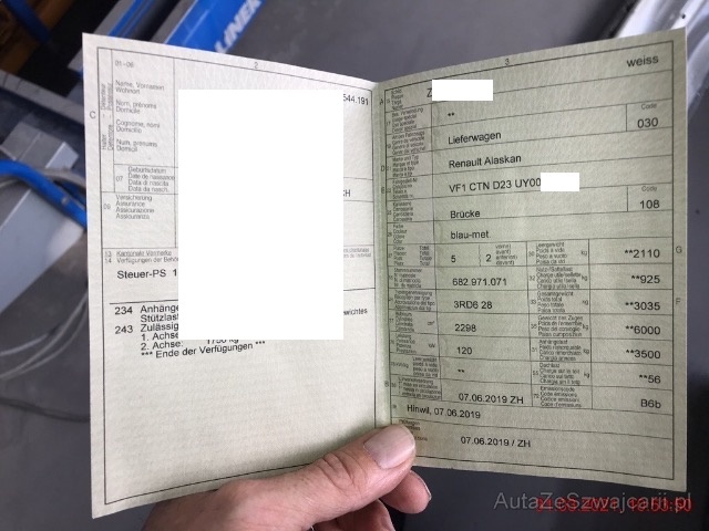 | DescriptionClaims | Hinten: Seitenwand der Brücke links und rechts deformiert, Boden der Brücke deformiert, Brücke verdreht. Heckklappe deformiert, Rahmen deformiert + gestaucht, Anhängerkupplung deformiert, Kabelsatz Anhängerkupplung durchtrennt, Verschraubung Chassis zu Kabine verschoben etc. / Vorne: Motorhaube deformiert, Stossstange gerissen, Kühlergrill gebrochen, Nebellampe gebrochen, diverse Luftführungen gebrochen. Abstandssensor vorne Halter deformiert. |