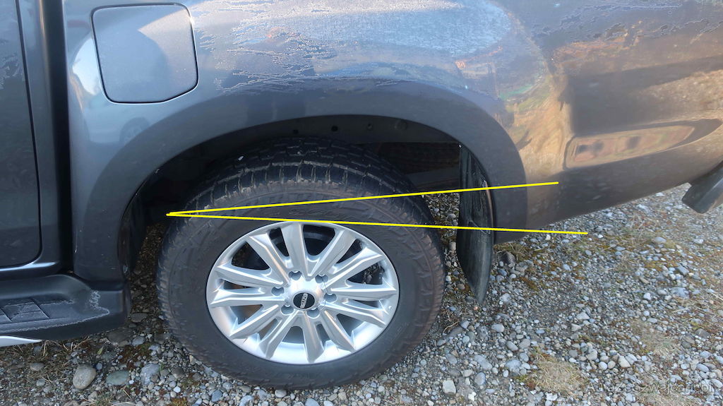 Achse nach hinten verschoben.Blattfedern geknickt.