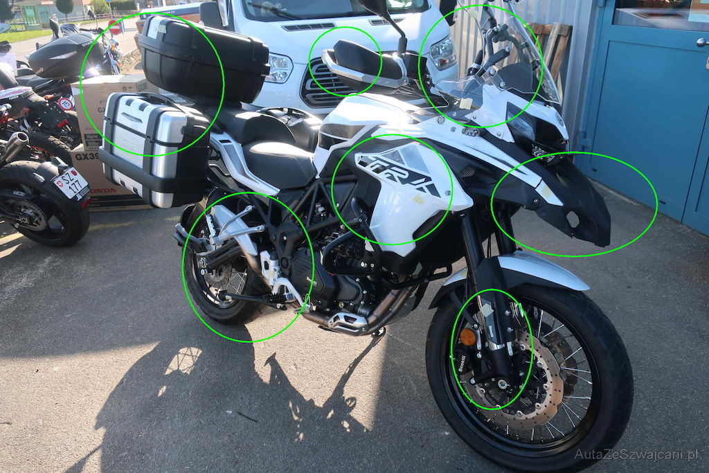 | Information | Folgendes Zubehör wird nicht mitangeboten: - Schutzschild Ölfilter TRK / Aluminium Öldeckel / Schutzgitter TRK / Werkzeugkasten / Navi-Gerät / Zusatznebellampen. Die Original-Teile werden mitgegeben. Inklusive Koffer-Set und Halterungen (1490.- ) Risiko: Unzerlegt,siehe Fotos. Rahmen effektiv (Lack gerissen, Anschlag so weit ersichtlich noch nicht gebrochen). Vorderachse (Gabel komplett) effektiv. Sonder- und Serienausstattung siehe Anhang |