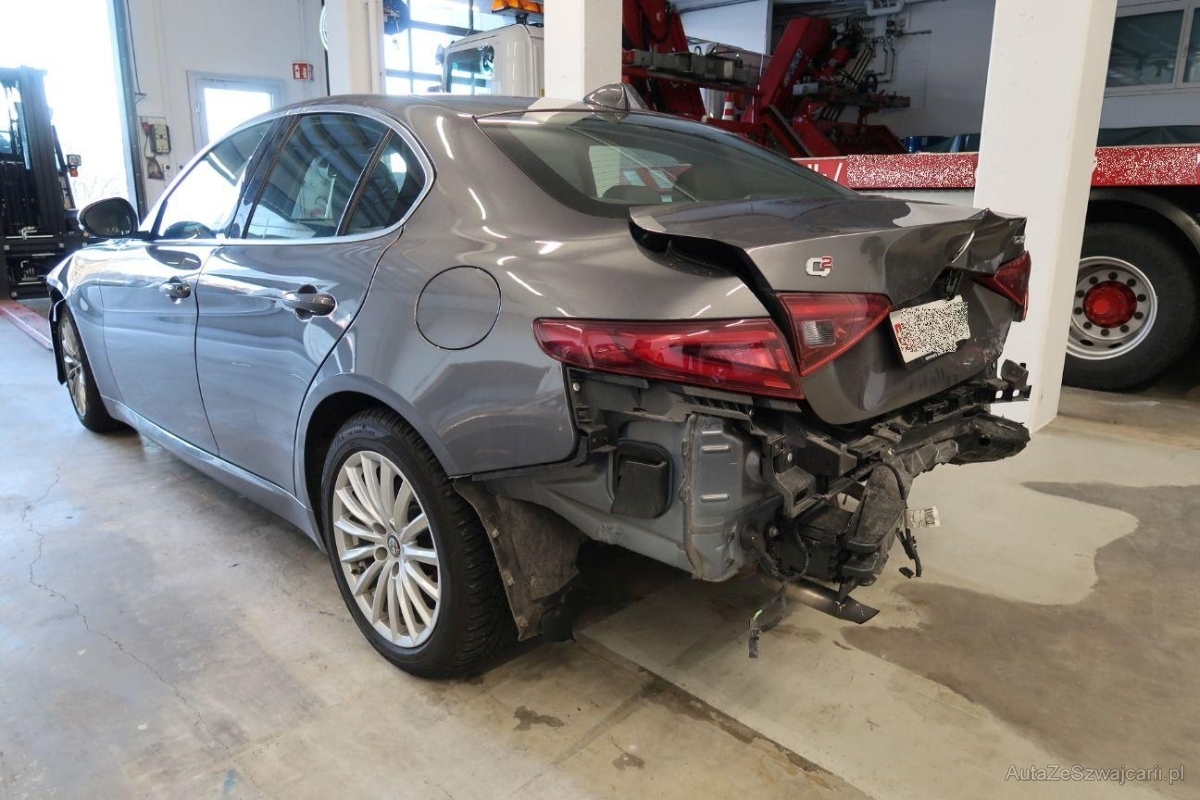 | Special equipment | Paket Komfort (Sonnenblende Fahrer und Beifahrerseite mit beleuchtetem Spiegel, Keyless Entry, Türgriffe aussen beleuchtet für Einstiegsbereich, Ablagefach), Paket Klima (USB-Anschluss vorne, Air Quality System (AQS) mit gekühltem Handschuhfach, Mittelarmlehne vorne mit Ablagefach, Zweiter USB-Anschluss), Pack Business Plus (Assist: Rückfahrkamera, Totwinkel-Assistent, Innenspiegel automatisch abblendbar, Aussenspiegel automatisch abblendend, Licht: Fernlichtassistent High Beam, Parksensoren vorne und hinten), Rote Bremszangen (v//h), Leichtmetallräder im Speichen-Design 17J, Seitenfenster-Zierleisten verchromt, Ledersitze, Fahrwerk: Alfa Active Suspension Fahrwerk mit elektronischer Stossdämpferregelung |