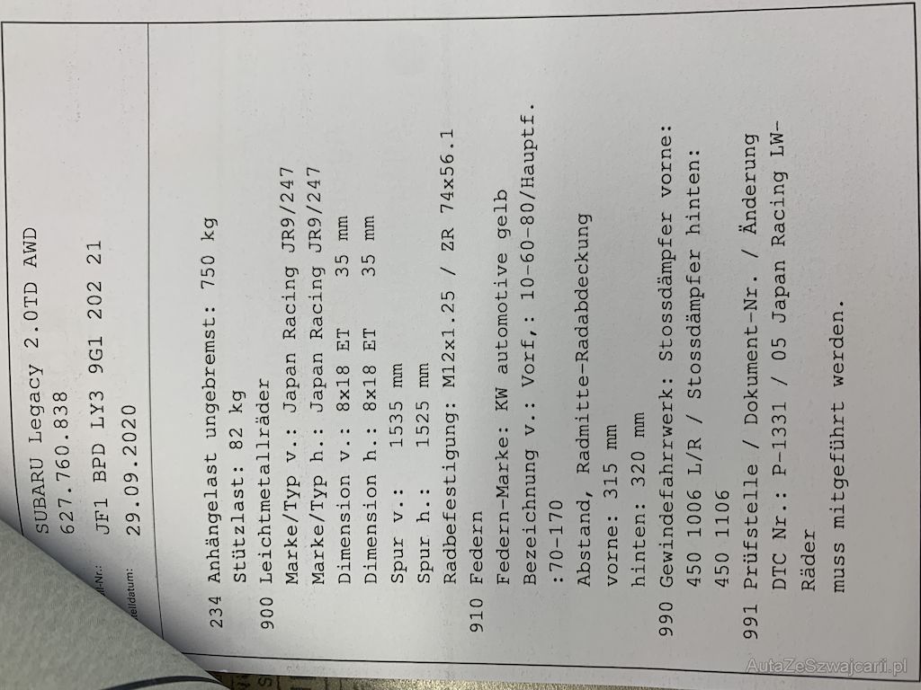 | Typ | Legacy 2.0 TD AWD |