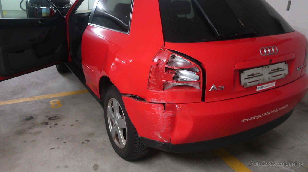 Stosst. und Rücklicht h.l. gebrochen, Heckblech und Seitenwand l. gestaucht