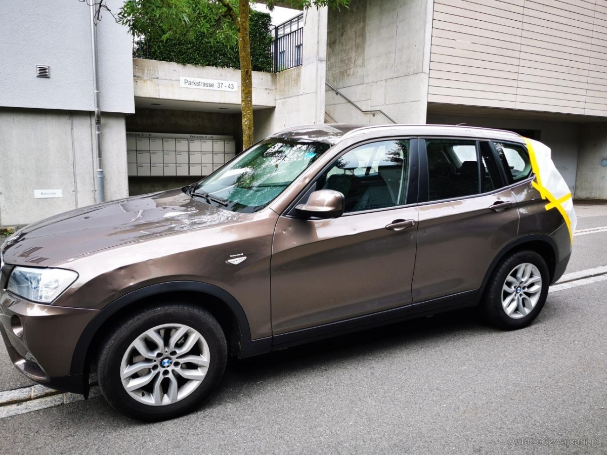 | Serial equipment | Vordersitze höhenverstellbar, AUX-Anschluss, Lenkung, elektrisch unterstützt, Verbandskasten, Lackierung: Uni-Lackierung, Stoff-Ausstattung, Dekor: Interieurleisten in Satinsilber matt, Steckdose 12V, Elektrische Fensterheber vorne + hinten, Reifendruckverlust-Warnsystem, ISOFIX Kindersitzvorrichtung, Kopfstützen und Mittelarmlehne abklapp- bar hinten, Dynamische Stabilitätskontrolle (DSC), Nebelscheinwerfer, Check-Control-System, Cornering Brake Control (CBC), Airbag: Seitenairbag für Fahrer und Beifahrer, Abschliessbare Radschrauben, Automatische Parkbremse, 8-Stufen-Automat sequentiell, Window-Kopfairbags, Radio BMW Business CD, Allradantrieb permanent, Hill Descent Control (HDC), Bremsbelag-Verschleissanzeige, Lenkrad: Lenkrad längs- und höhenverstellbar, Lenkrad: Multifunktionslenkrad, Scheibenwischer vorne mit Intervall, Make up-Spiegel links, Nichtraucherausführung, Antiblockiersystem (ABS), Crash-Sensor, Wegfahrsperre elektronisch, Tempomat mit Bremsfunktion, Sitzbelegungserkennung für Airbags, Klimatisierungsautomatik, Bremsassistent (BAS), Leichtmetallfelgen im V-Speiche 304, 17J, Sicherheitstrennnetz oder /-gitter im Gepäckraum, Aktive Kopfstützen, Partikelfilter und Oxydationskatalysator, Airbag: Airbag Fahrer und Beifahrer, Aussentemperaturanzeige, Befestigungsösen im Laderaum, Steckdose, Zentralverriegelung mit Fernbedienung, Veloursfussmatten vorne und hinten, Start-/Stop-Knopf, Make up-Spiegel rechts, Cupholder, Dynamische Bremsleuchten, Drittes Bremslicht, Dynamische Traktionskontrolle (DTC), Rücksitzlehne geteilt abklappbar, Stereolautsprechersystem mit 5 LS |