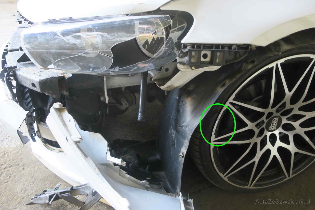 | Information | Kollision mit anderem Fahrzeug Front links, Reifen und Felge beschädigt |