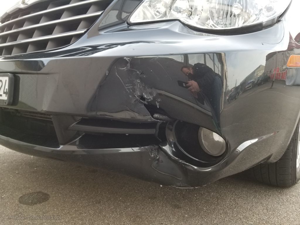 Beschädigt, deformiert oder gestaucht sind die Stossstange vorne, die linke Nebelleuchte, der Kotflügel links, die Türe vorne links und der linke Aussenspiegel.
