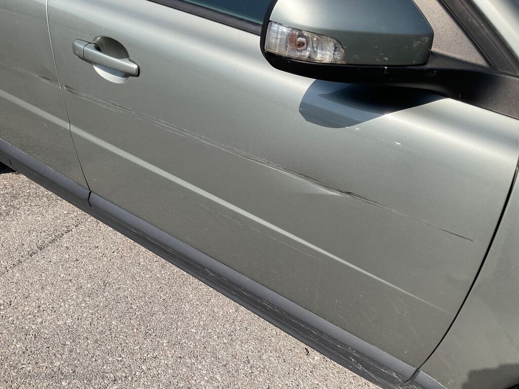 Ailes, portes et pare-chocs avant et arrière, enfoncés et rayés.