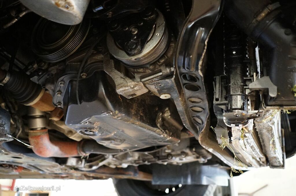 Chocs avant inférieur et soubassement avec sortie de route : pare-chocs avant et garnitures, traverse-renfort de chocs, groupe de refroidissement et support inférieur, pompe servo-direction, carter moteur, compresseur climatiseur et courroie, conduit d'air de suralimentation, support boîte de vitesses, jante avant droite et demi-train, berceau, filtre à particules, renfort de tunnel, plancher avant, écrans plancher arrière,