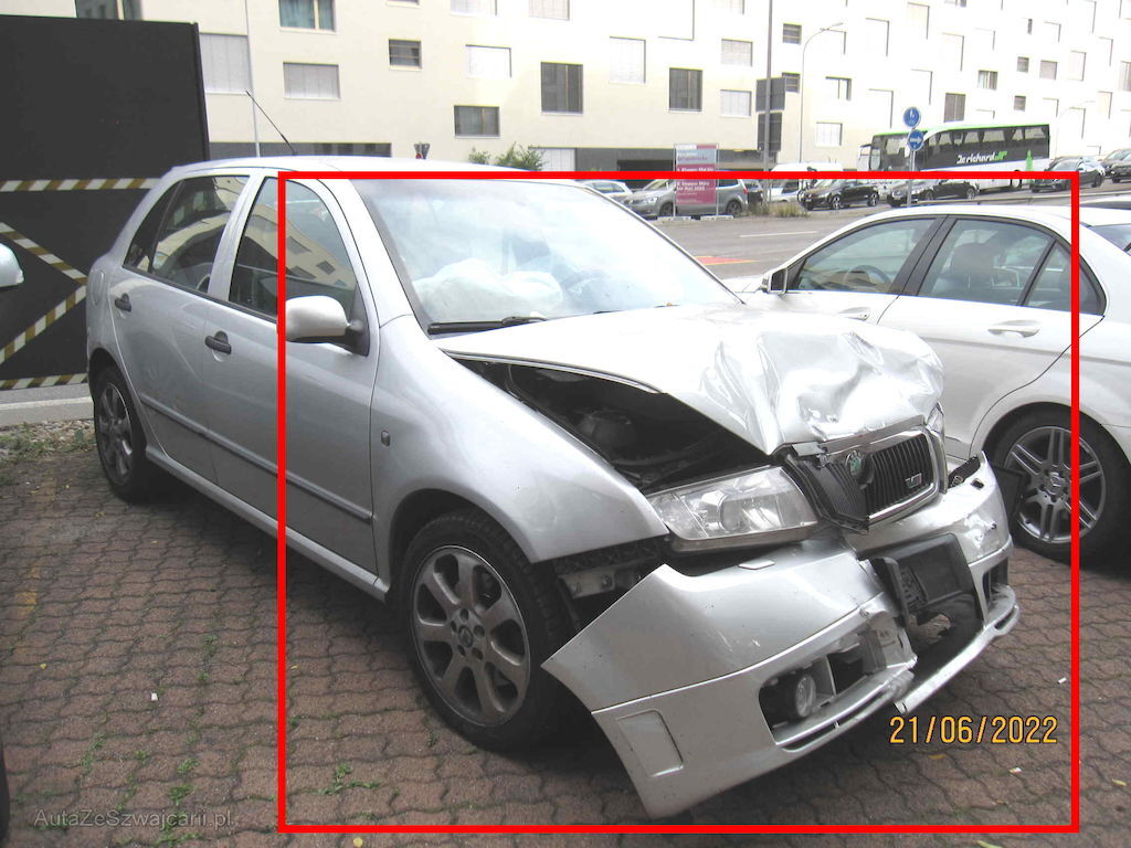 Stossfänger vorne, Motorhaube, beide Scheinwerfer, Kotflügel links, Frontmaske, gesamtes Kühlerpaket, Frontscheibe links unten, Radaufhängung vorne links, beide Airbags vorne