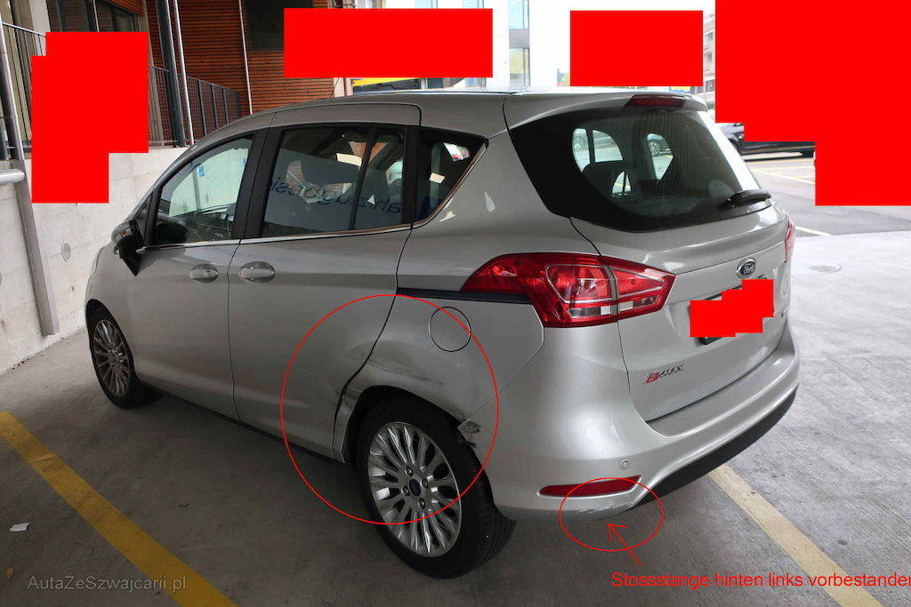 mittlerer Anprall linke Seite: Türe hinten, Seitenwand, Stossstange, Felge