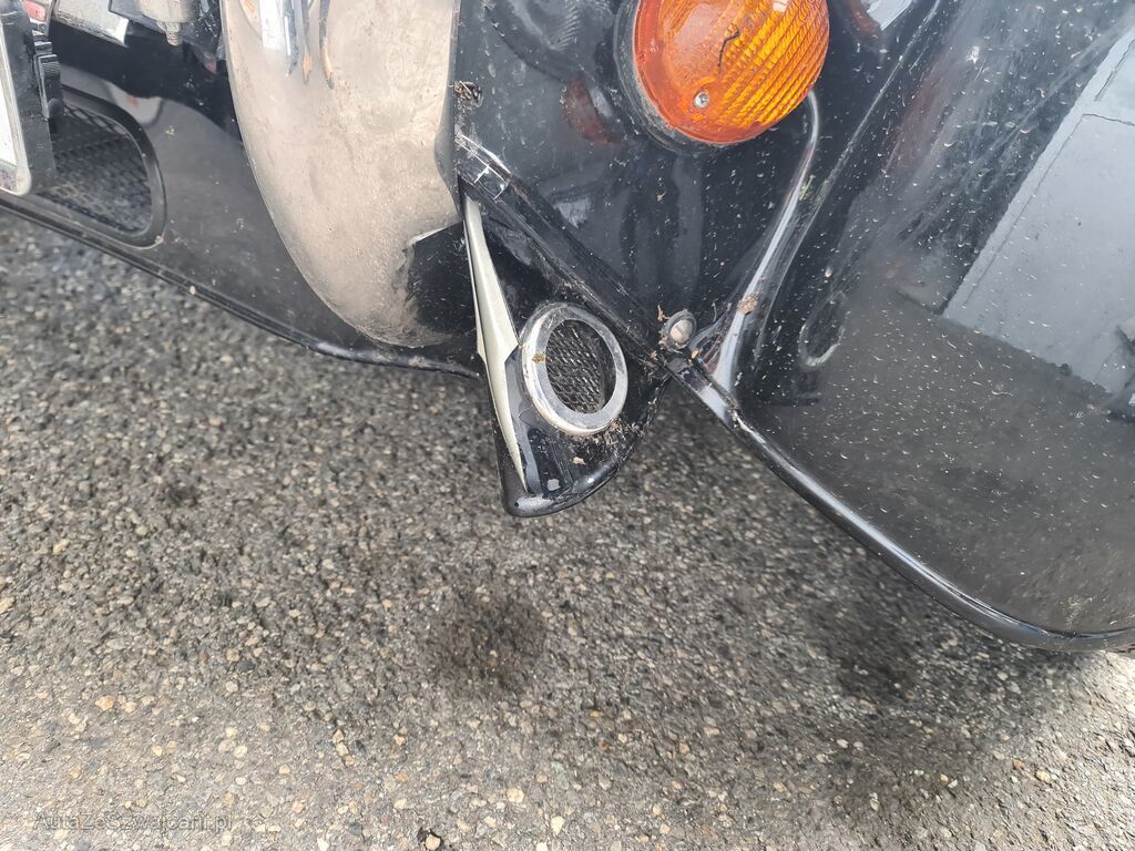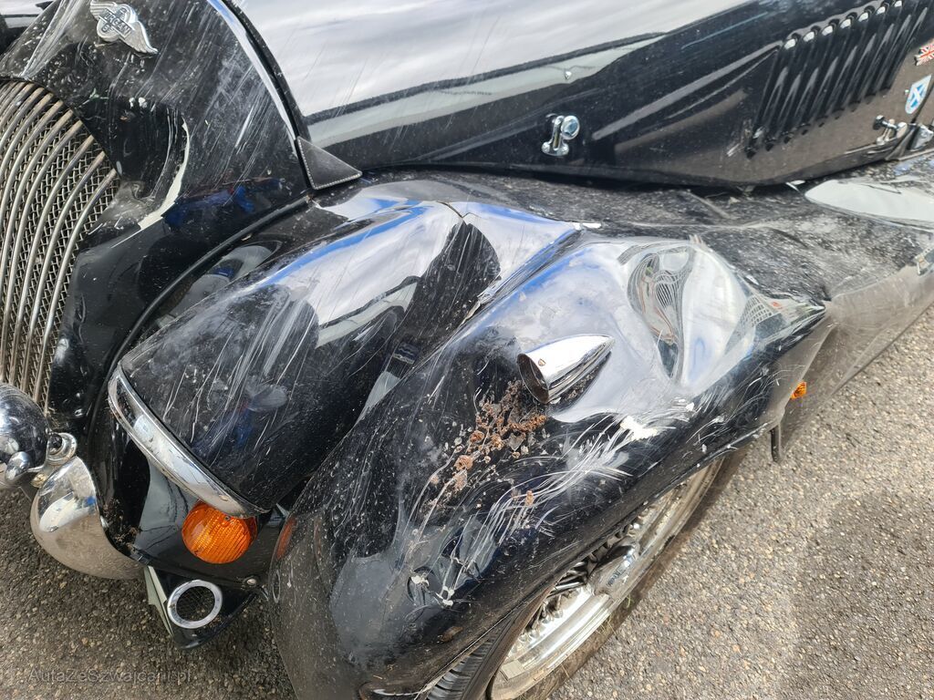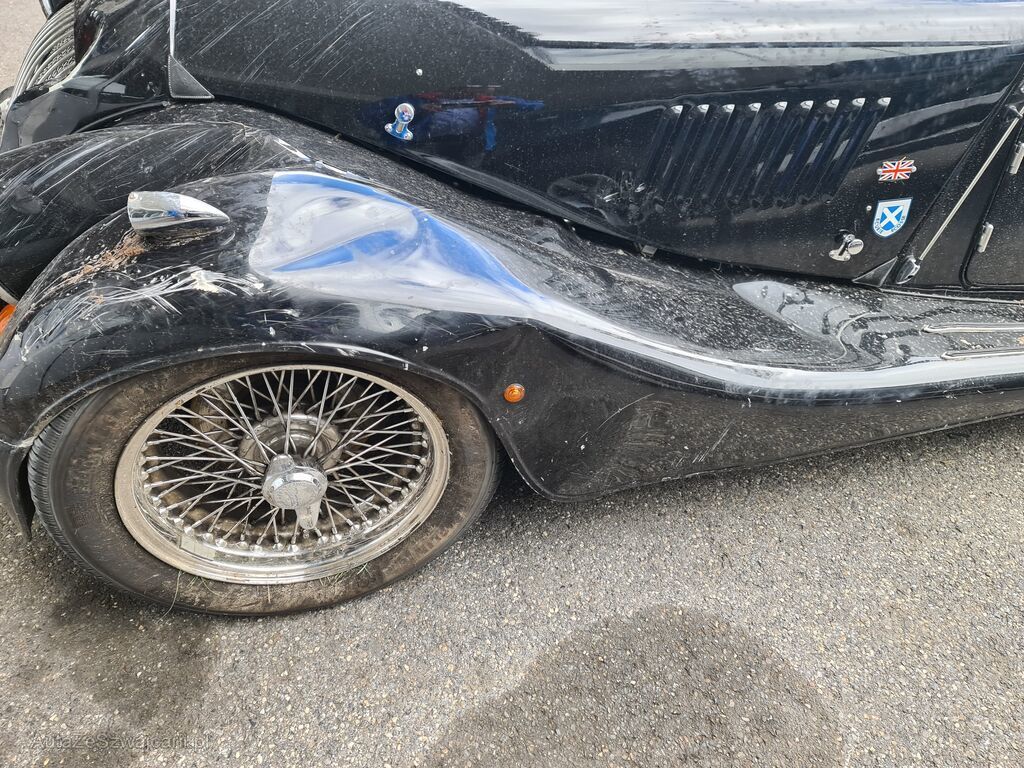 Frontmaske eingedrückt, Scheinwerfer vorne rechts versplittert, Kotflügel vorne links und rechts eingebeult, Motorhaube links und rechts verzogen, Scheibenrahmen abgebrochen, Frontscheibe gesprungen, Armaturenbrett verkratzt, Türe und Seitenwände links und rechts eingebeult, Heckblech eingedrückt, Wagenboden verkratzt, Holzrahmen risiko