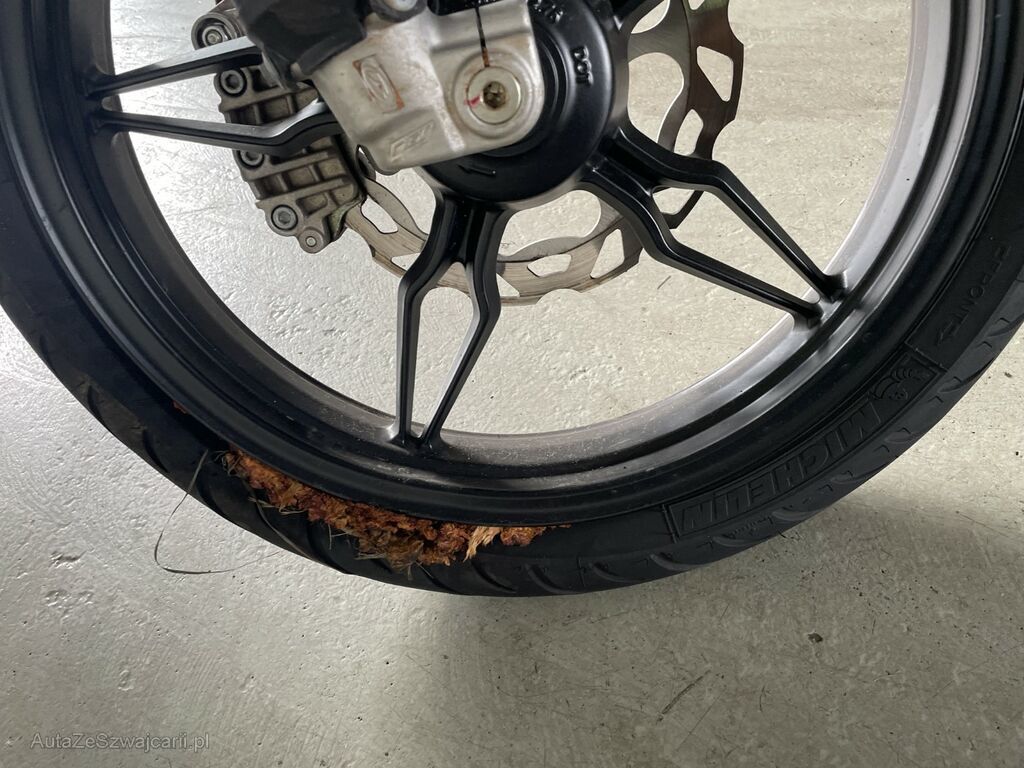 mit Beschädigung von: Lenker, Gabel, Felge vorne, Kühler, Verschalungen, Display