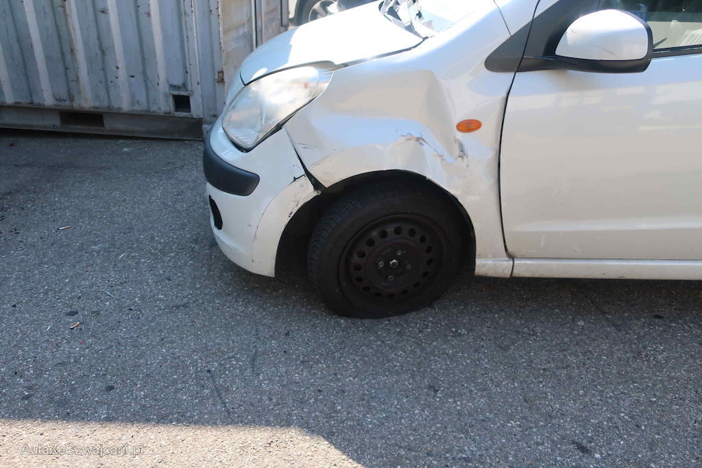 Pare choc avant, aile av.g, phare gauche, demi train av.g et porte av.g endommagés