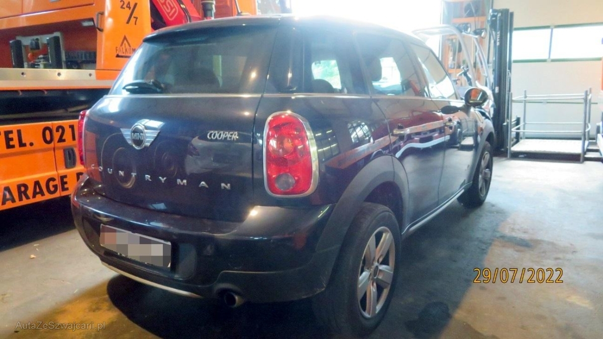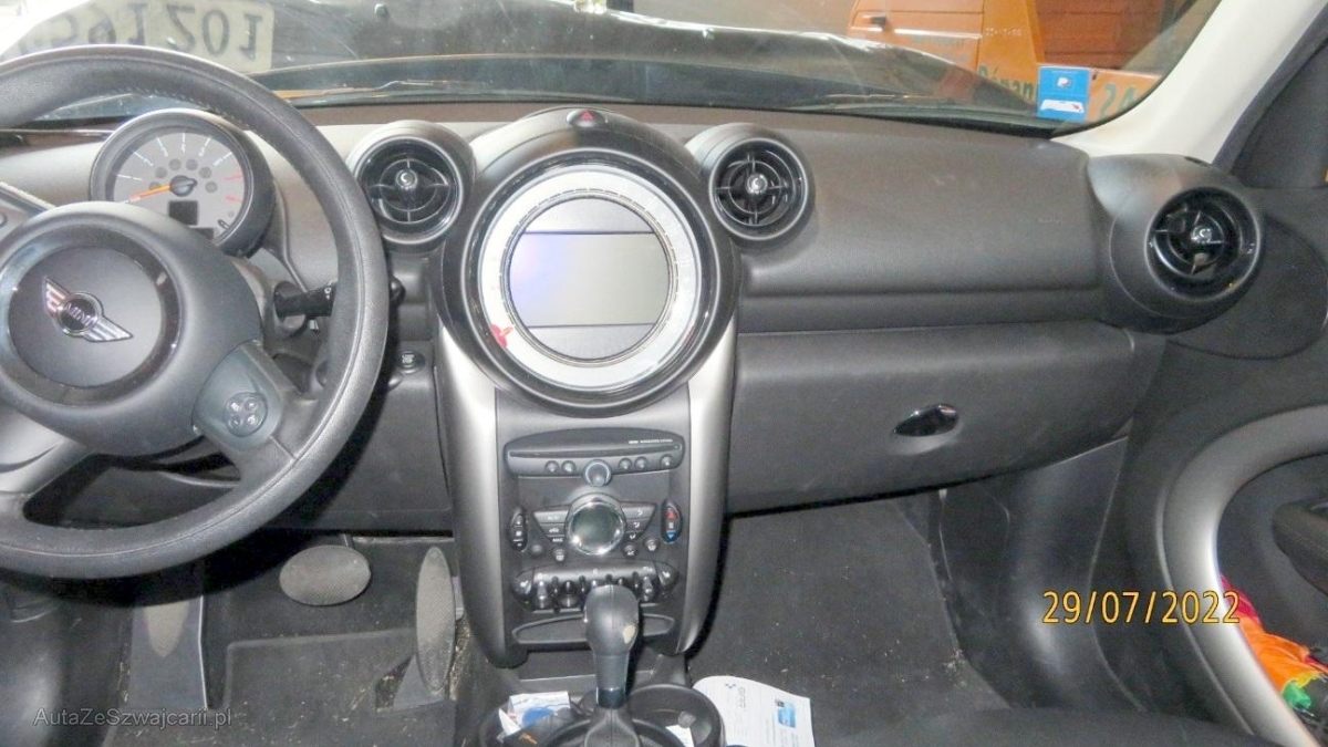 | Serial equipment | 3-Punkt-Sicherheitsgurte auf allen Plätzen, Media: DAB+ (Digital Audio Broadcasting), Dachhimmel light beige, Steckdose, Heckscheiben-Wisch-/Waschanlage mit, MINI ALL4 Exterieur Optik, Abschliessbare Radschrauben, Lackierung: Uni-Lackierung, Lichtwarnsummer, Aussentemperaturanzeige, Anfahrassistent, Media: Radio MINI Boost, Klimaanlage, Befestigungsösen im Laderaum, Make up-Spiegel links, Lenkrad: Lenkrad längs- und höhenverstellbar, Reifenreparatur-Set mit Kompressor, Dachspoiler, Einstiegsschienen, Airbag: Airbag Fahrer und Beifahrer, Dynamische Stabilitätskontrolle (DSC), Elektrische Fensterheber vorne + hinten, Drittes Bremslicht, Aux-In Anschluss, Aussenspiegel in Wagenfarbe, Handschuhfach gekühlt, Zweiklanghorn, Scheibenwischer vorne mit Intervall, Cupholder vorne und hinten, Türgriffe aussen verchromt, Wegfahrsperre elektronisch, Nichtraucherausführung, Leichtmetallräder 5-Star Air Spoke 16J, Airbag Beifahrer deaktivierbar, Bremsenergie-Rückgewinnung, Sitze: Rücksitzlehne geteilt abklappbar, Stossstangen in Wagenfarbe, ISOFIX Kindersitzvorrichtung, Scheibenwaschdüsen beheizt, Verbandskasten, Bordcomputer, Gepäcknetze an beiden Vordersitzen, Wartungsintervall-Anzeige, Dach in Wagenfarbe, Heckscheibenheizung, Servolenkung geschwindigkeitsabhängig, Bremsbelag-Verschleissanzeige, Katalysator geregelt, Stabilisatoren vorne und hinten, Leuchtweitenregulierung elektrisch, Airbag: Window-Kopfairbags, Seitenairbags, Antiblockiersystem (ABS), Sitze: Vordersitze höhenverstellbar, Aussenspiegel rechts und links elektrisch verstellbar, 2. Schlüssel mit Funkfernbedienung, Reifendruck-Kontrollanzeige, Licht: Abblendlichtausschaltverzögerung 'Follow me home', Mittelkonsole, Polster: Stoff-Ausstattung, Licht: Tagfahrlicht, Tageskilometerzähler, Gurtstraffer vorne, Ablagefach, Zentralverriegelung mit Fernbedienung, Türgriffe innen verchromt, Höhenverstellbare Gurten vorne, Getriebe: Allradantrieb permanent, Dynamische Traktionskontrolle (DTC), Veloursfussmatten vorne und hinten, Digital Uhr, Aktivkohlefilter, Getönte Scheiben, Getriebe: 6-Stufen-Automat sequentiell, Interieurleisten, Drehzahlmesser, Cornering Brake Control (CBC), Gurtkontrolle, Licht: Nebelschlussleuchte, Kopfstützen hinten, Bremsassistent (BAS), Make up-Spiegel rechts, Dachreling, Start-/Stop-Knopf, Park Distance Control hinten, Scheibenwischer vorne mit Regensensor und automatischem Einschalten der Abblendlichter, Weisse Blinkleuchten, Bluetooth-Freisprecheinrichtung mit USB-Anschluss, Lichtpaket, Xenon-Scheinwerfer mit Scheinwerferreinigungsanlage und automatischer Leuchtweitenregulierung, Variabler Ladeboden, Sport-Lederlenkrad |