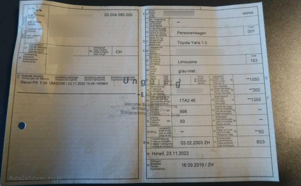 | Fahrzeugausweis | Vorhanden |