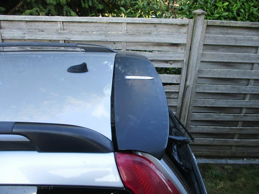Heckspoiler im hinteren Bereich gebrochen und abgrissen. Heckleuchte links oben durch abgedrückten Heckspoiler gebrochen. Die aufklappbare Heckscheibe ist gebrochen. Scherben befinden sich im Kofferraum. Heckklappe oben eingedrückt. Heckklappen- und Heckscheibenscharniere sind verbogen. Dadurch wurde das Dach hinten aufgestaucht.