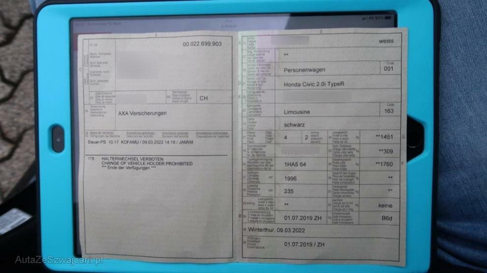 | Fahrzeugausweis | Vorhanden |