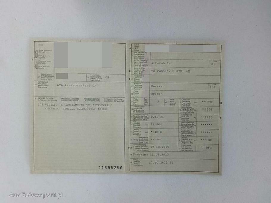 | Fahrzeugausweis | Vorhanden |