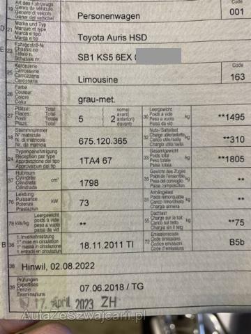 | Ausstattung | Serienaustattung Klimaautomat Airbag Fahrer und Beifahrerseite Elektronische Wegfahrsperre Sitzheizung vorne Elektrische Fensterheber vorne + hinten Tempomat Seitenairbag Fahrer und Beifahrerseite Nebelscheinwerfer Zentralverriegelung mit Fernbedienung Höhenverstellbarer Fahrersitz manuell Lederlenkrad Mittelarmlehne vorne Innenspiegel automatisch abblendbar Lenkrad verstellbar Kopfairbag vorne und hinten Scheibenwischer mit Regensensor Deaktivierung Beifahrerairbag Aussenspiegel elektrisch verstellbar/ heizbar und anklappbar Audiofernbedienung am Lenkrad Stabilitätskontrolle VSC + Traktionskontrolle TRC Leichtmetallräder 17" Servolenkung geschwindigkeitsabhängig Knieairbag Fahrer Isofix-Kindersitzbefestigung hinten Rücksitzlehnen getrennt abklappbar 60:40 Radio/ CD Scheinwerfer mit automatischer Ein- Ausschaltfunktion Smart entry-start/ Schliess- Startsystem Anschluss USB und AUX Reifen-Reparatur Set ABS und EBD Elektr. Bremskraftverteilung inkl. BA Bluetooth Freisprecheinrichtung Innenspiegel mit integriertem Rückfahrmonitor Keine Gewähr auf die Angaben der Serienausstattungen Sonderausstattung Metallic- oder Mica Lackierung |