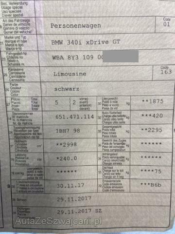 | Ausstattung | Serienaustattung Seitenairbag für Fahrer und Beifahrer Radio BMW Professional Reifendruck-Kontrollsystem RDC Durchladesystem Automatische Heckklappenbetätigung Regensensor Dynamische Stabilitäts-Control DSC Servotronic Lederlenkrad Fahrer und Beifahrer-Airbag Velours-Fussmatten Uni-Lackierung Multifunktions-Lenkrad Fensterheber elektrisch vorne + hinten Dynamische Traktions-Control DTC Armauflage vorn verschiebbar Klimaautomat 2-Zonen inkl. Mikrofilter Kindersitzbefestigung Isofix für Fondsitze Digital audio DAB-Tuner ABS Antiblockiersystem inklusive Bremsassistent Interieurleisten Satinsilber matt Auto Start Stopp Funktion Freisprecheinrichtung mit USB-Schnittstelle LED-Nebelscheinwerfer Keine Gewähr auf die Angaben der Serienausstattungen Leichtmetallräder V-Speiche 395 LED-Scheinwerfer BMW Service Plus 10 Jahre/ 100'000 km Sonderausstattung Metallic-Lackierung HiFi-Lautsprechersystem Leder Dakota Pack M Sport M Leichtmetallräder Doppelspeiche 598/ Mischbereifung Pack Comfort Pack Sicherheit Pack Connected Drive Professional Telefonie mit Wireless Charging Sonstige Ausstattung und Zubehör ACC, Stop&Go, Ablieferungspauschale |