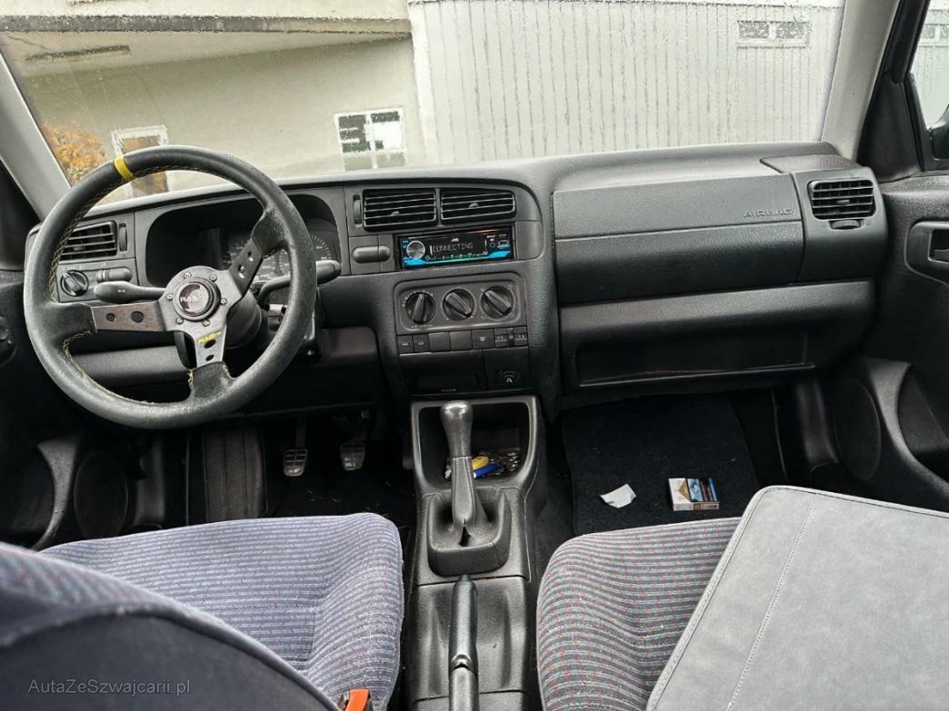 | Serial equipment | Katalysator geregelt, Heckscheiben-Wisch-/Waschanlage mit, Klima: Pollenfilter (Staubfilter), Zentralverriegelung, Wassertemperaturanzeige, Laderaumabdeckung, Kontakte für Innenraumbeleuchtung an allen Türen, Allradantrieb permanent, Drehzahlmesser, Beleuchtetes und abschliessbares Handschuhfach, Leseleuchten vorne, Tageskilometerzähler, Seitenschutz-Zierleisten, Elektrische Fensterheber vorne + hinten, Aussenspiegel rechts und links beheizbar und elektrisch verstellbar, Polster: Velours-Ausstattung, Licht: Nebelschlussleuchte, Frontspoiler, Höhenverstellbare Gurten vorne, 5-Gang-Getriebe, Digital Uhr, Lenkrad: Lenkrad höhenverstellbar, Sitze: Rücksitzlehne geteilt abklappbar, Servolenkung, Antiblockiersystem (ABS), Innenlicht-Abschaltverzögerung, Scheibenwischer vorne mit Intervall, Zweiklanghorn, Grün getönte Scheiben, Sitze: Fahrersitz höhenverstellbar, Radiovorbereitung, Antenne, Entstörung und 4 LS |