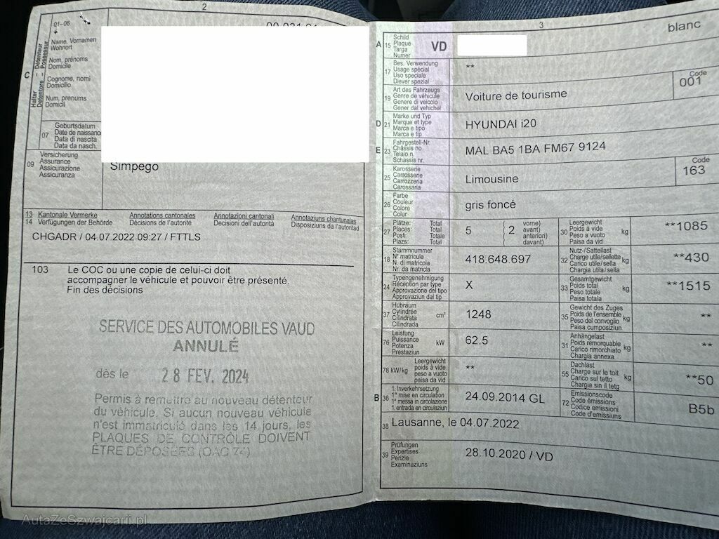 | Information | *****Achat du véhicule à partir de la place à votre propre risque et sans garantie. La garantie pour les défauts matériels est exclue. |