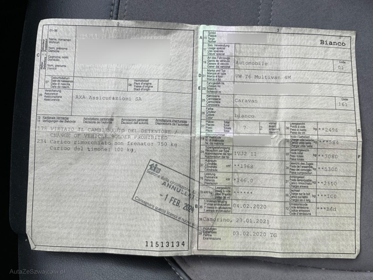 | Fahrzeugausweis | Vorhanden |