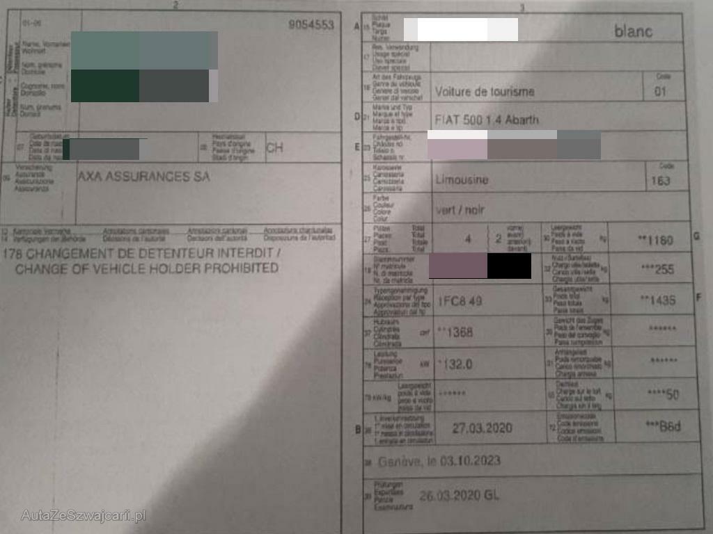 | Fahrzeugausweis | Vorhanden |