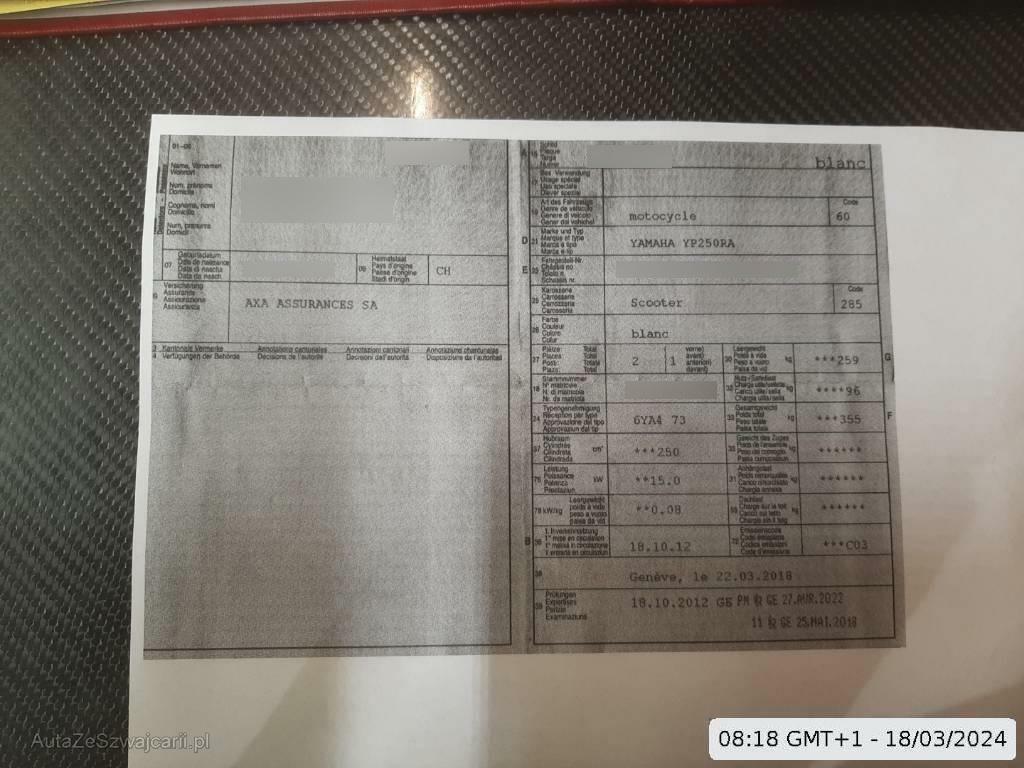 | Fahrzeugausweis | Vorhanden |