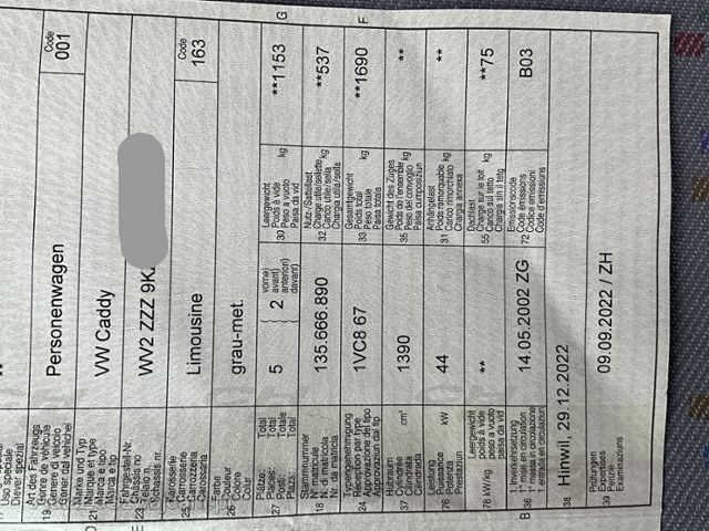 | Wichtige Hinweise | Zustand Fahrzeug muss transportiert werden (Höhe und Breite beachten). Fahrzeug ist NICHT fahrbar. Fahrzeug ist rollbar. Motor startet nicht, Ursache unbekannt. Batterie leer. Bereifung Fahrzeug wird mit Winterräder abgegeben. Kategorie Fahrzeug nach Diebstahl aufgefunden. Weitere wichtige Hinweise Zündschloss defekt, Fahrzeug Startet nicht! Türschloss Fahrerseite defekt. |