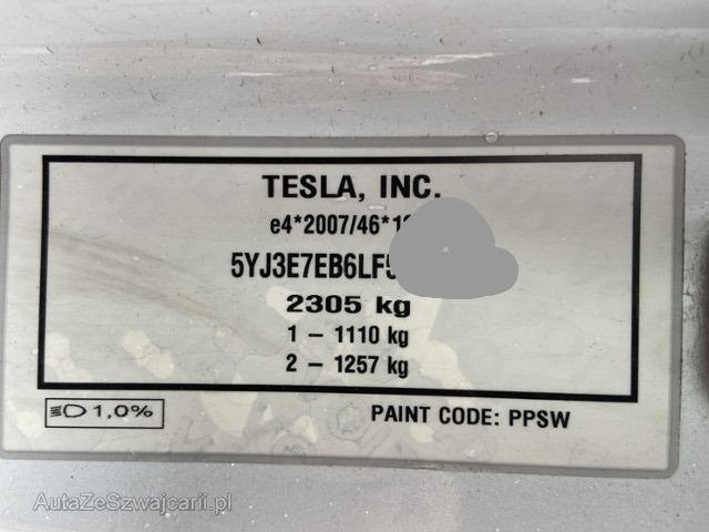 | VIN | 5YJ3E7EB6LF****** |