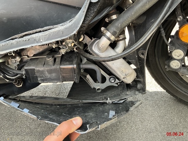 | Schadensbeschreibung | Chute importante en roulant côté droit. Tous les carénages, poste de pilotage et périphériques, radiateur, échappement Termignoni... // Dommages préexistants: Le scooter présente également un antivol de direction forcé, mais sans lien avec la chute... |