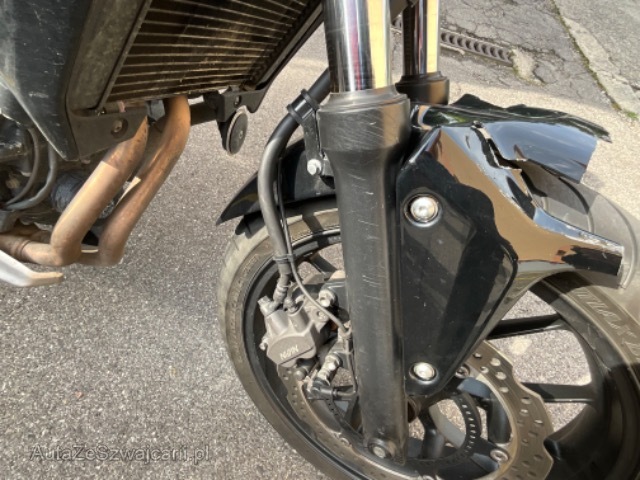 | Schadensbeschreibung | Roue et disc de frein, tube de fourche drt , carénage avd araignée ainsi que le garde boue avant sont endommage |