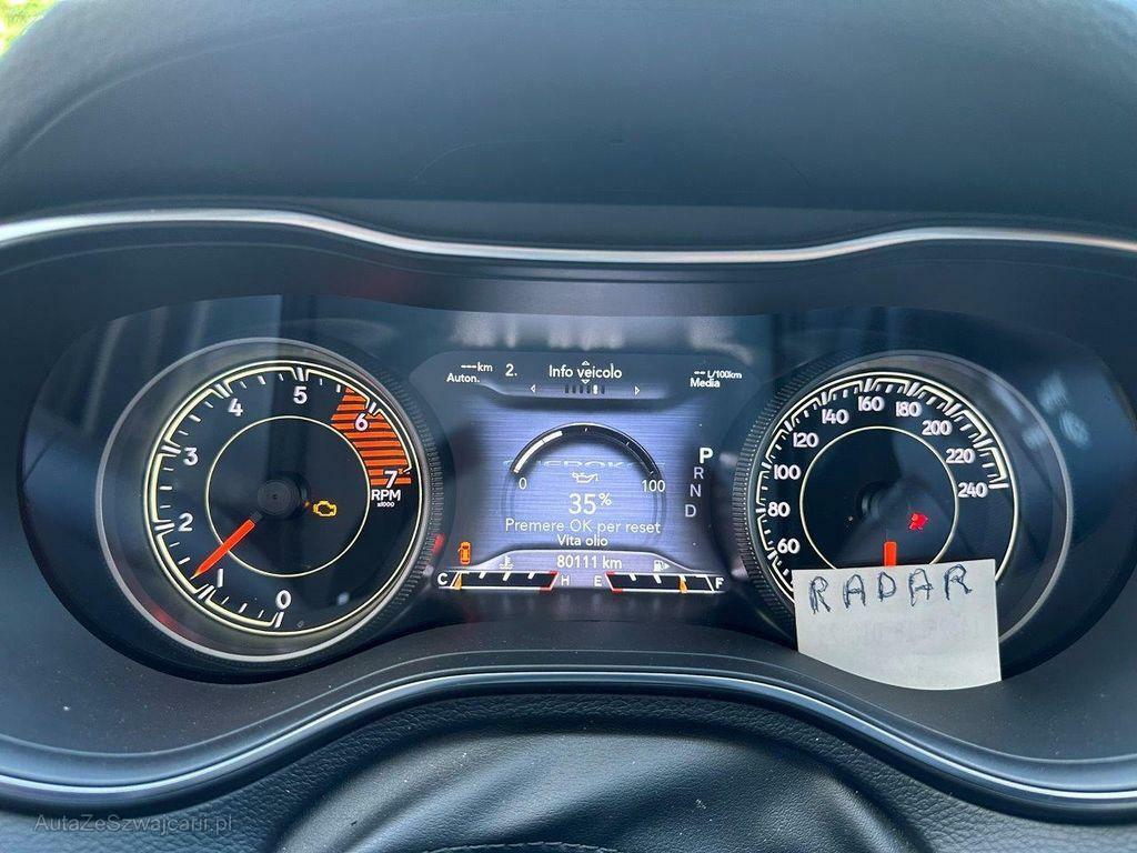 | Serienausstattung | Airbag: Airbag Fahrer und Beifahrer, Fahrlichtautomatik, Räder: 4 Leichtmetallfelgen 17J mit Pneu, Antiblockiersystem (ABS), Lenkrad-Wippschaltung (Paddles), Polster: Stoff Schwarz mit grauen Ziernähten, Airbag: Window-Kopfairbags, Tankdeckel-Entriegelung von innen, Sitze: Mittelarmlehne hinten, Innenleuchten LED, Subwoofer, Licht: LED Nebelscheinwerfer, Räder: Reifendruck-Kontrollanzeige, Info-Display, Elektronische Parkbremse, Sitze: Rücksitzlehne geteilt abklappbar, Elektrische Fensterheber vorne + hinten, Aktive Kopfstützen, Allradantrieb permanent, Zentralverriegelung mit Fernbedienung, Heckscheibenheizung, Media: USB+AUX-Anschluss, Sitze: Kreuzstützen für Vordersitze elektrisch verstellbar, Cupholder vorne, Katalysator geregelt, Sitze: Vordersitze elektrisch verstellbar 8-fach, City-Notbremsassistent SCBS mit Fussgängererkennung, Lenkrad beheizbar, Aussenspiegel elektrisch einklappbar, Wegfahrsperre elektronisch, Auspuffblende, Getönte Scheiben, Dachreling silber, Stopp-/Start-System, Thorax Seitenairbag für Fahrer und Beifahrer, Media: Uconnect Multimedia: 8,4'' inkl. Navigation, Apple CarPlay und Android Auto, Heckklappe elektrisch, Licht: LED Heckleuchten, Multifunktionslenkrad in Leder, Keyless Entry / -Start, Regensensor für Scheibenwischer vorne, Licht: Drittes Bremslicht, Innenspiegel automatisch abblendbar, Gurtkontrolle, Beide Make up-Spiegel beleuchtet, Totwinkel-Assistent, Gummifussmatten vorne und hinten, Bremsassistent (BAS), Aussenspiegel rechts und links beheizbar und elektrisch verstellbar, Raucherpaket, Steckdose 12V, Assist: Auffahrwarnsystem, Assist: Spurhalteassistent Lane Assist, Antriebsschlupfregelung (ASR), Vordersitze manuell verstellbar, Licht: Adaptives Bremslicht, Berganfahrassistent, Aktive Geschwindigkeitsregelung mit Stop & Go Funktion, Laderaumabdeckung, Klima: 2-Zonen-Klimaautomatik, Licht: Voll-LED-Scheinwerfer, Rückfahrkamera mit Hilfslinien, Aussenspiegel und Türgriffe in Wagenfarbe, ISOFIX Kindersitzvorrichtung, Jeep Garantie: 3 Jahre, max. 100'000 km (ab 1. Inv.), Servolenkung, Elektronisches Stabilitäts-Programm (ESP) mit Anhängerstabilisierung, Cupholder hinten, Getriebe: 9-Stufen-Automat sequentiell, Alpine Premium Sound System, Park Assist Pilot, Lenkrad: Lenkrad längs- und höhenverstellbar, Licht: LED-Tagfahrlicht, Pollenfilter (Staubfilter), Abschliessbares Handschuhfach, Licht: Nebelschlussleuchte, Park Distance Control vorne und hinten, Airbag: Knie-Airbag für Fahrer |