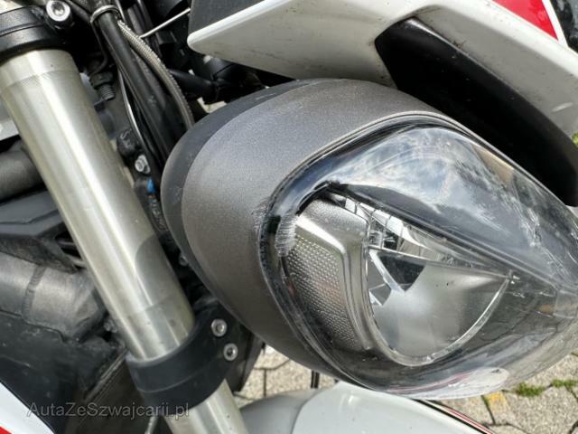 | Beschädigungen | Rechts Rechte Seite beschädigt. Ist auf die rechte Seite gefallen. Verschalung oben rechts verkratzt. Front Gabel Risiko. Lenker verbogen. Heck Schwinge hinten Risiko. Verschalung hinten verkratzt. Abgasanlage deformiert. Mitte Kraftstofftank deformiert. Motor Kupplungsdeckel beschädigt. Kühler ist eingedrückt. |