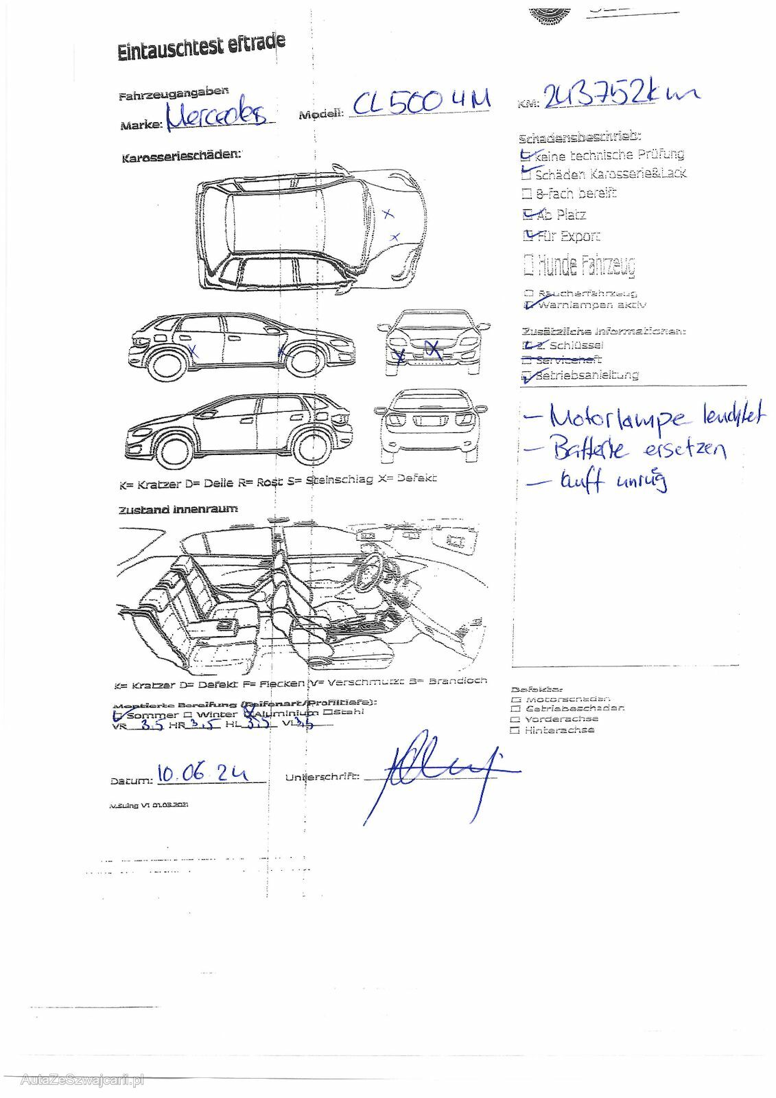 Keine technische Prüfung (Werkstatttest) vorgenommen