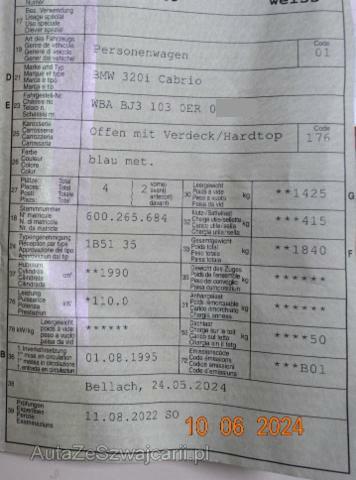 | Ausstattung | Serienaustattung Fahrer und Beifahrer-Airbag Vorbereitung für Radioeinbau Lenksäulen-Neigungsverstellung mechanisch Fensterheber elektrisch hinten Skisack Aussenspiegel elektrisch verstellbar Fensterheber elektrisch vorn Zentralverriegelung m. Crash-Sensor und Wegfahrsicherung Aussentemperaturanzeige Check-Control Stossfänger in Wagenfarbe Vorbereitung für Montage Hardtop Wärmeschutzglas grün Seitliche Blinkleuchten vorn Leuchtweitenregulierung Antiblockiersystem ABS Servolenkung Pack Innenlicht Leichtmetallräder Höhenverstellbarer Beifahrersitz Stoff Flachgewebe Sonderausstattung Klimaanlage inkl. Mikrofilter Diebstahlwarnanlage mit Fernbedienung Überrollschutzsystem inkl. Fond-Kopfstützen CD-Wechsler BMW CD 6 Selection HiFi-Aktiv-Lautsprechersystem BMW-Sportsitze für Fahrer und Beifahrer Sitzheizung für Fahrer und Beifahrer Armauflage vorn Beheizung für Aussenspiegel und Frontscheiben-Waschdüsen Nebelscheinwerfer vorne Elektrohydraulische Verdeckbetätigung Metallic-Lackierung Automatische Stabilitäts-Control + Traktion M-Sportfahrwerk Pack M-Sport |