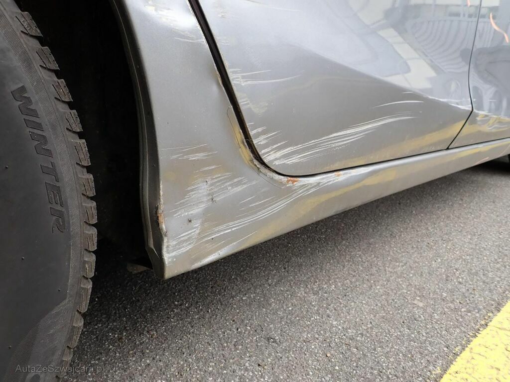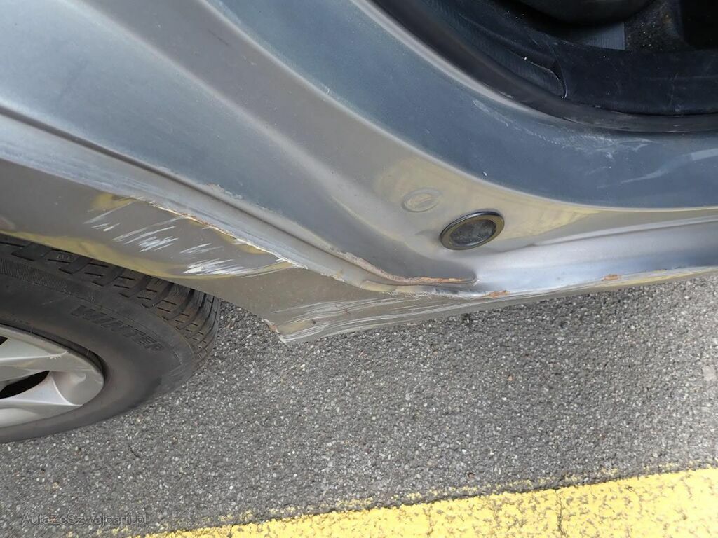 Porte avant, porte arrière, aile arrière, bas de caisse, enjoliveur de roue arrière du côté droit.