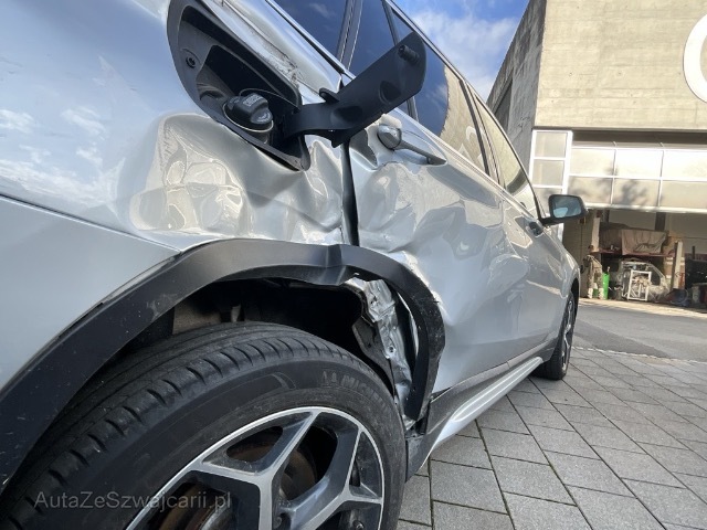 | Schadensbeschreibung | SW, C-Säule, Türe und Fahrwerk eingedrückt, diverse Fehlermeldungen im Instrument Vorbestandene Schäden: Hinten links: Türe Delle, Normale Gebrauchsspuren |