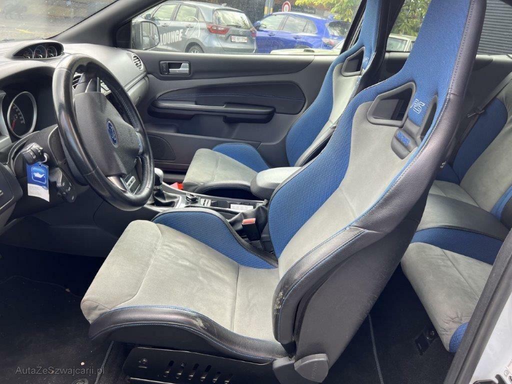 | Serienausstattung | Aussenspiegel rechts und links beheizt, elektrisch verstell- / und einklappbar, 3 Speichen-Lederlenkrad mit Aluminiumspeiche mit Prägung ST, Klima: Klimatisierungsautomatik, Licht: Nebelschlussleuchte, Schalthebelknauf in Leder, ISOFIX Kindersitzvorrichtung, Innenspiegel automatisch abblendbar, Seitenschwellerverkleidung in Wagenfarbe lackiert, Oeldruckanzeige, Scheibenwischer vorne mit Intervall, Aluminium-Applikationen, Assist: Bremsassistent (BAS), Getriebe: 6-Gang-Getriebe, Katalysator geregelt, Dunkel getönte Scheiben hinten, Drehzahlmesser, Airbag: Window-Kopfairbags, Abblendlichtausschaltverzögerung 'Follow me home', Ladedruck-Anzeige, Sitze: Rücksitzlehne geteilt abklappbar, Heckscheibenheizung, Heckspoiler gross, Wegfahrsperre elektronisch, Bordcomputer, Seitenaufprall-Schutzsystem, Elektrische Fensterheber vorne mit Schnellsenktaste fahrerseitig, Regensensor für Scheibenwischer vorne, Licht: Drittes Bremslicht, Sitze: Mittelarmlehne vorne, Leuchtweitenregulierung von innen, Raucherpaket, Premium-Mittelkonsole, Gurtstraffer vorne, Stossstangen, Aussenspiegel und Türgriff in Wagenfarbe, Radiovorbereitung, Antenne, Entstörung und 6 LS, Licht: Nebelscheinwerfer, Getönte Scheiben, Klima: Pollenfilter (Staubfilter), Heckscheiben-Wisch-/Waschanlage, Lichtwarnsummer, Bi-Xenon-Scheinwerfer inkl. Reinigungsanlage, Kreuzstütze für Fahrersitz verstellbar, Airbag: Fahrer und Beifahrer, ABS und TCS, Licht: Notbremslicht (EBS), Räder: Reifenreparatur-Set (Tire Fit), Fahrwerk: Sportfahrwerk, Blinker in Aussenspiegel, FordPower KeyFree Startfunktion, Innenlicht-Abschaltverzögerung, Kühlergrill in Wagenfarbe, Pedalerie mit Aluminiumauflage, Recaro-Sportsitze vorne, Polster: Stoff-Ausstattung, Tageskilometerzähler, Lenkrad: Lenkrad längs- und höhenverstellbar, Servolenkung, Elektronisches Sicherheits- und Stabilitätsprogramm (ESP), 4 RS-Leichtmetallfelgen 8.5x19J, Fahrlichtautomatik, Oeltemperaturanzeige, Audiosystem Radio/CD Fernbedienung am Lenkrad Aux-In |