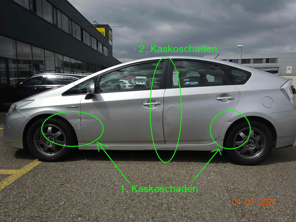 1. Kaskoschaden Kotflügel links türe vorne links, Türe hinten links und Seitenwand links