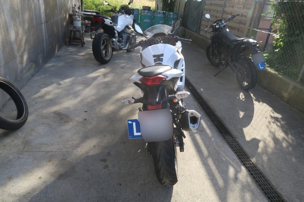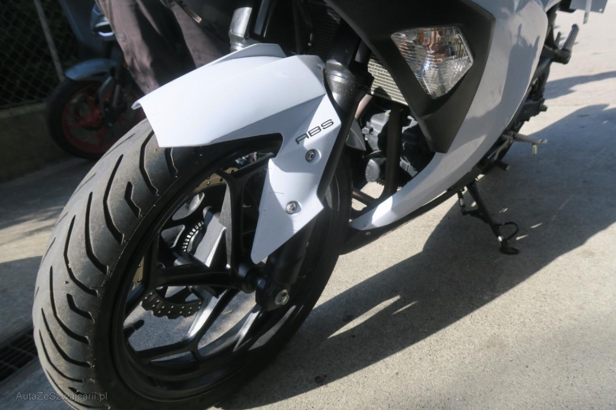 | Beschädigungen | Aussenspiegel links, Fussraster links, Gabelholm, Griff links, Lenker, Rad vorne, Scheinwerfer, Schutzblech vorne, Verschalungen vorne |