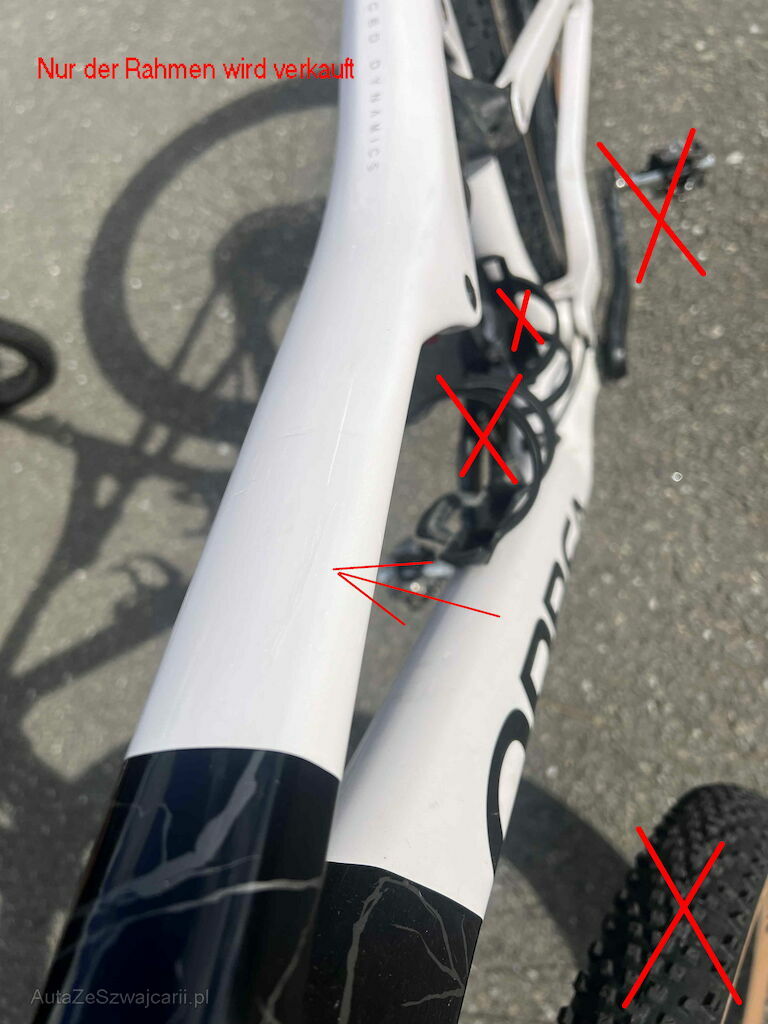 | Information | Carbonrahmen Mikroriss Es wird nur der Rahmen verkauft ohne Anbauteile. Siehe weitere Beschreibung in den Bildern. Der Rahmen hat neu einen Wert von CHF 4000.- |