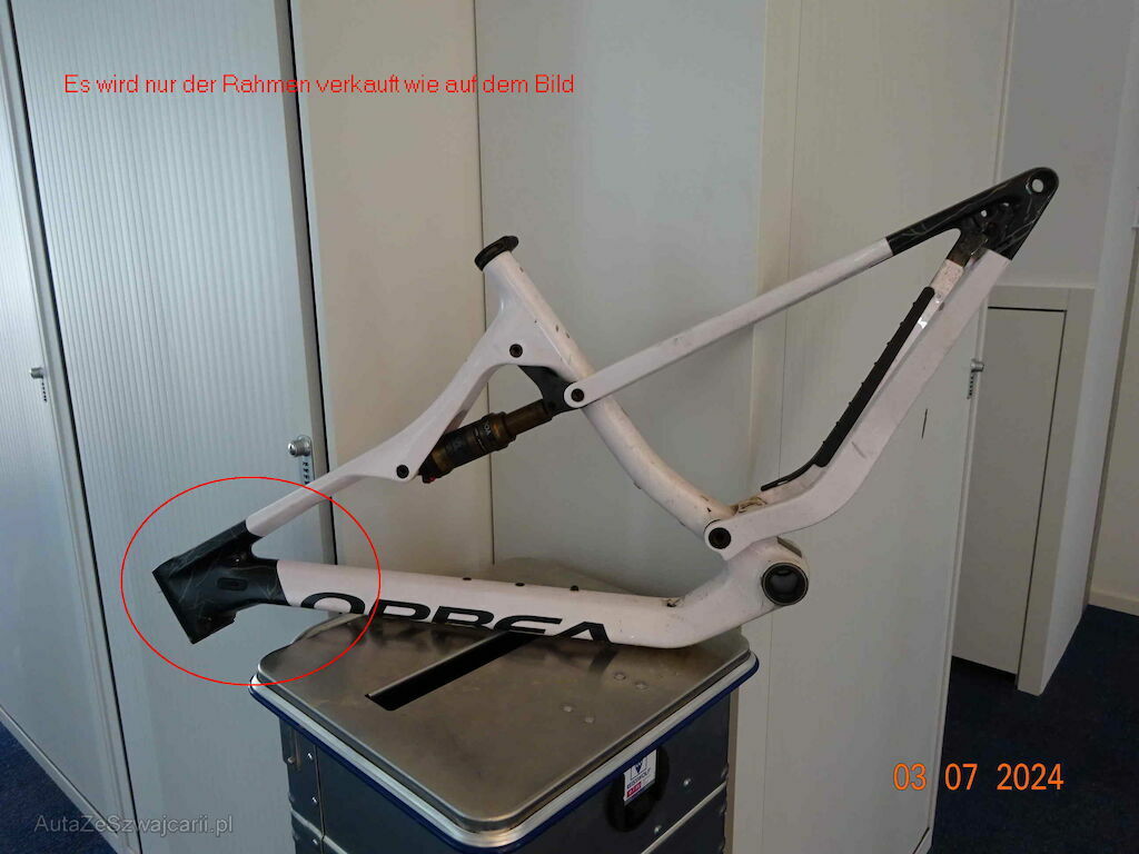 | Information | Carbonrahmen Mikroriss Es wird nur der Rahmen verkauft ohne Anbauteile. Siehe weitere Beschreibung in den Bildern. Der Rahmen hat neu einen Wert von CHF 4000.- |