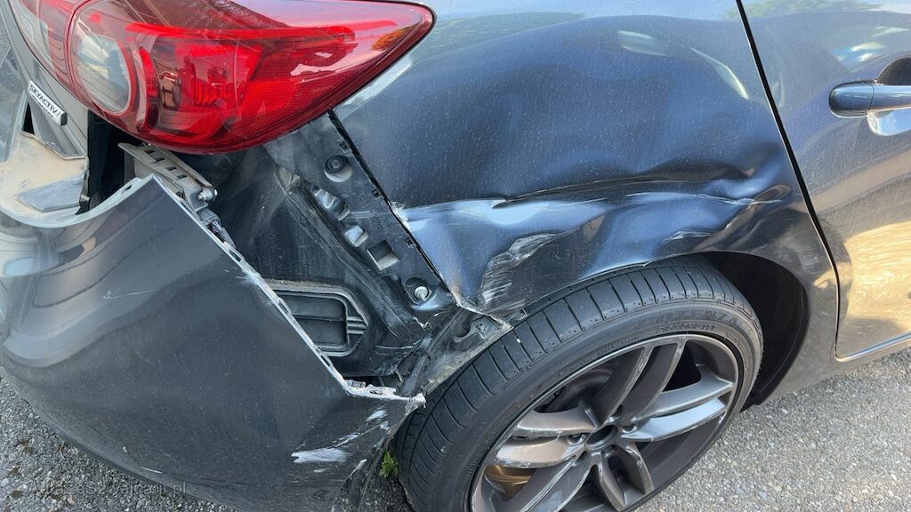 Kollisionsschaden, Aufprall in Fahrzeugseite rechts mit Beschädigung von Türe hinten, Seitenwand, Heckleuchte, Felge hinten, Risiko Hinterachse sowie diversen Anbauteilen.
