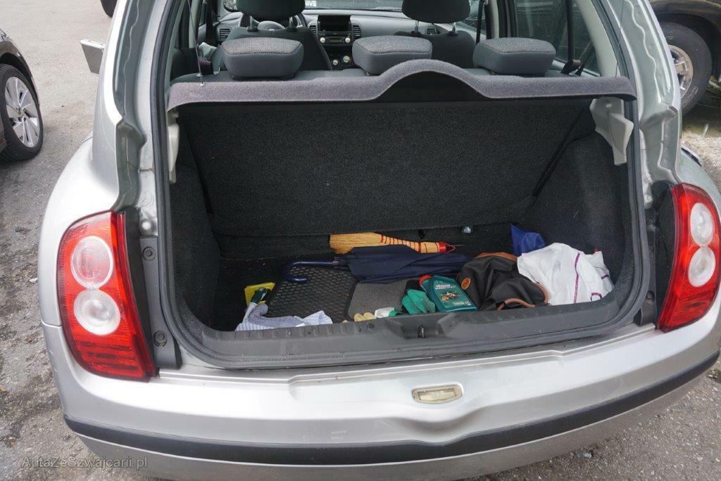 | Serienausstattung | Radzierblenden, Airbag: Airbag Fahrer und Beifahrer, Scheibenwischer vorne mit Intervall, Stoff-Ausstattung, Sitze: Fahrersitz höhenverstellbar, Rammschutzleisten, Servolenkung geschwindigkeitsabhängig, Weisse Blinkleuchten, ISOFIX Kindersitzvorrichtung, Heckscheiben-Wisch-/Waschanlage, Elektrische Fensterheber vorne, 5-Gang-Getriebe, 3-Punkt-Sicherheitsgurte auf allen Plätzen, Bremsassistent (BAS), Aussenspiegel von innen verstellbar, Heckscheibenheizung, Katalysator geregelt, Drittes Bremslicht, Stossstangen in Wagenfarbe, Handschuhfach, Cupholder vorne und hinten, Seitenairbags, Lenkrad höhenverstellbar, Digital Uhr, Radiovorbereitung, Dachantenne und, Gurtstraffer vorne, Drehzahlmesser, Nebelschlussleuchte, Stahlräder, Tageskilometerzähler, Antiblockiersystem (ABS), Zentralverriegelung mit Fernbedienung, Leuchtweitenregulierung elektrisch, Wegfahrsperre elektronisch, 3 Kopfstützen hinten |