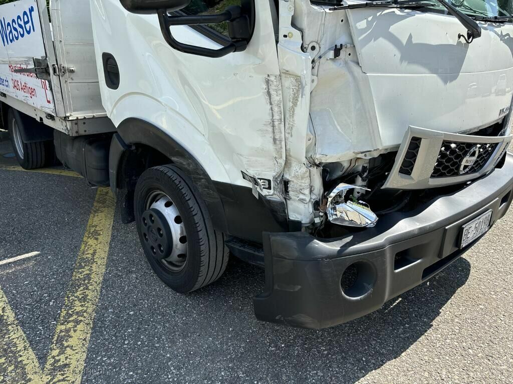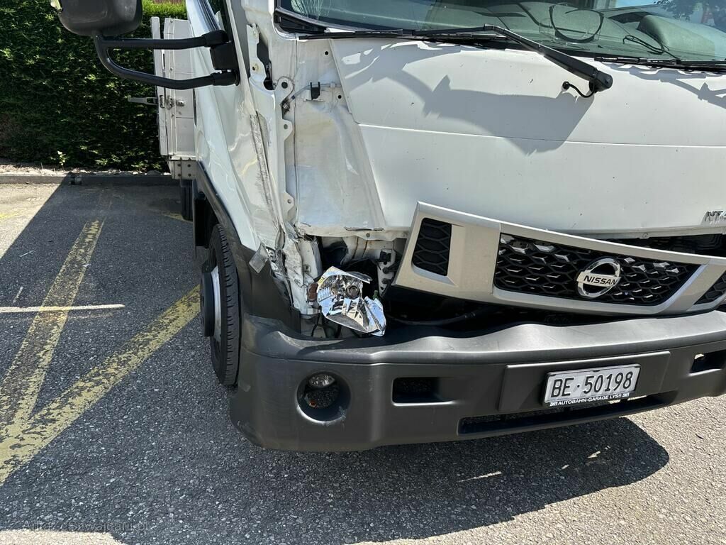 Kollisionsschaden, Aufprall in Fahrzeugfront rechts mit Beschädigung der gesamten Führerkabine rechts, Frontscheibe, Armaturenbrett, Lenkung, Brücke rechts sowie diversen Anbauteilen.