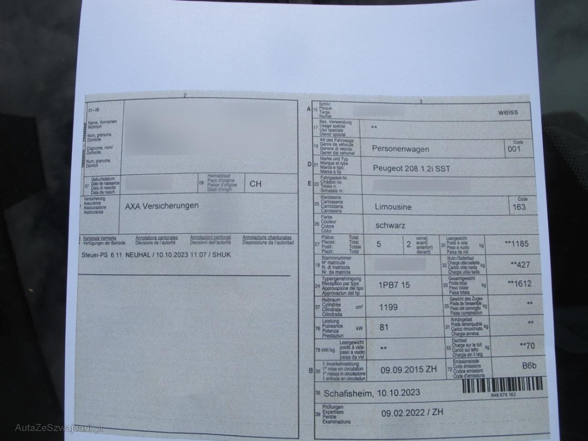 | Fahrzeugausweis | Vorhanden |
