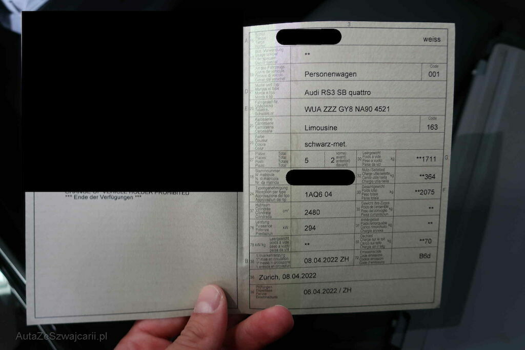 | Information | CH-Typenschein Guter gepflegter Zustand. 8fach bereift mit Originalen RS3 Räder 2 Schlüssel vorhanden Frontalkollision mit einem Motorrad Kleine Gebrauchsspuren rund um das Fahrzeug. |